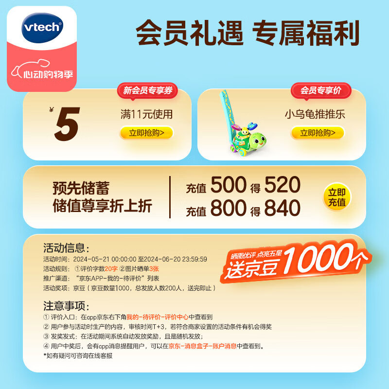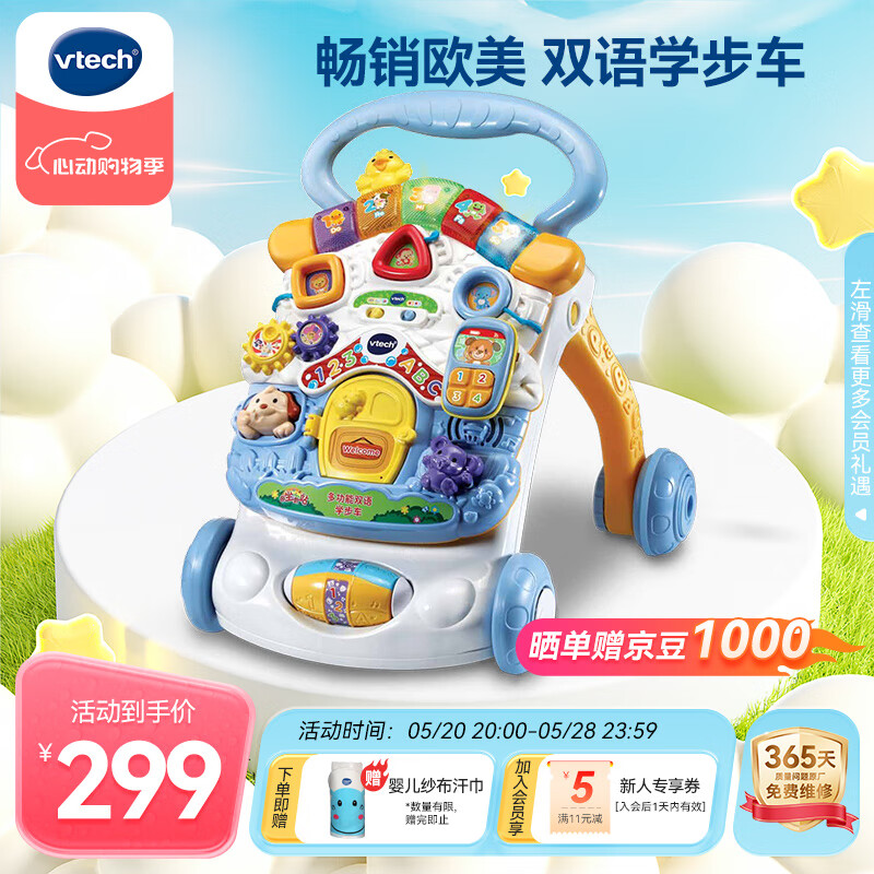 伟易达(Vtech)学步车婴儿玩具双语折叠调速手推车宝宝6月+男女孩生日儿童节礼物价格:349.00元!