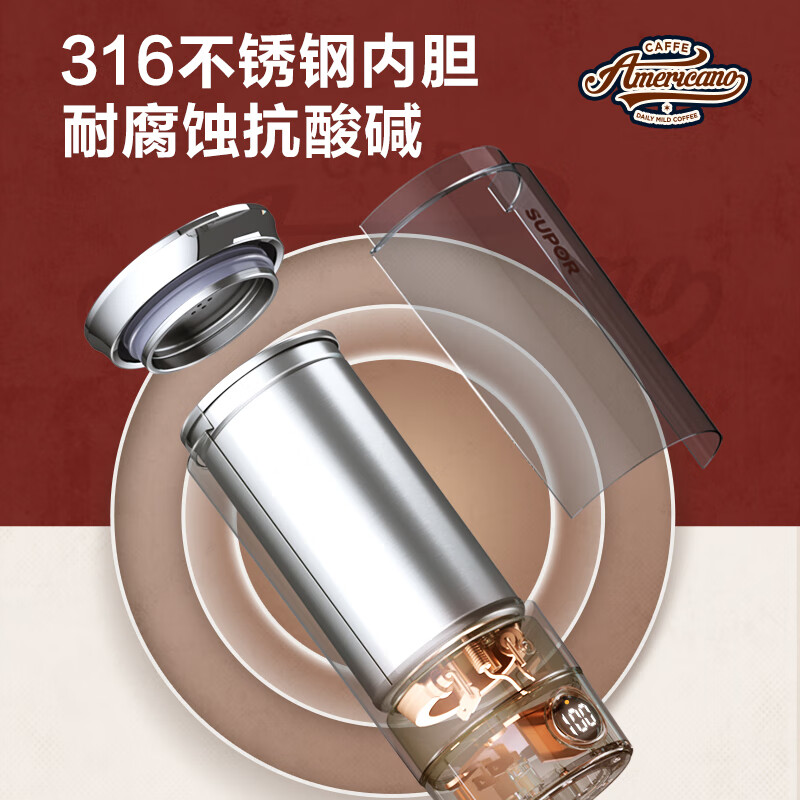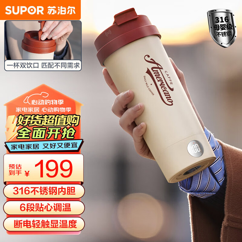 苏泊尔(SUPOR)电水壶 烧水杯便携式家用旅行电热杯 316不锈钢 旅行冲奶办公室养生 SW-03T01E 摩登红价格:199.00元!