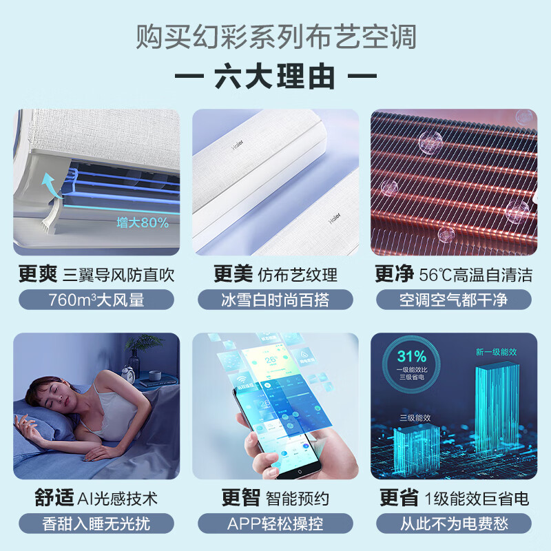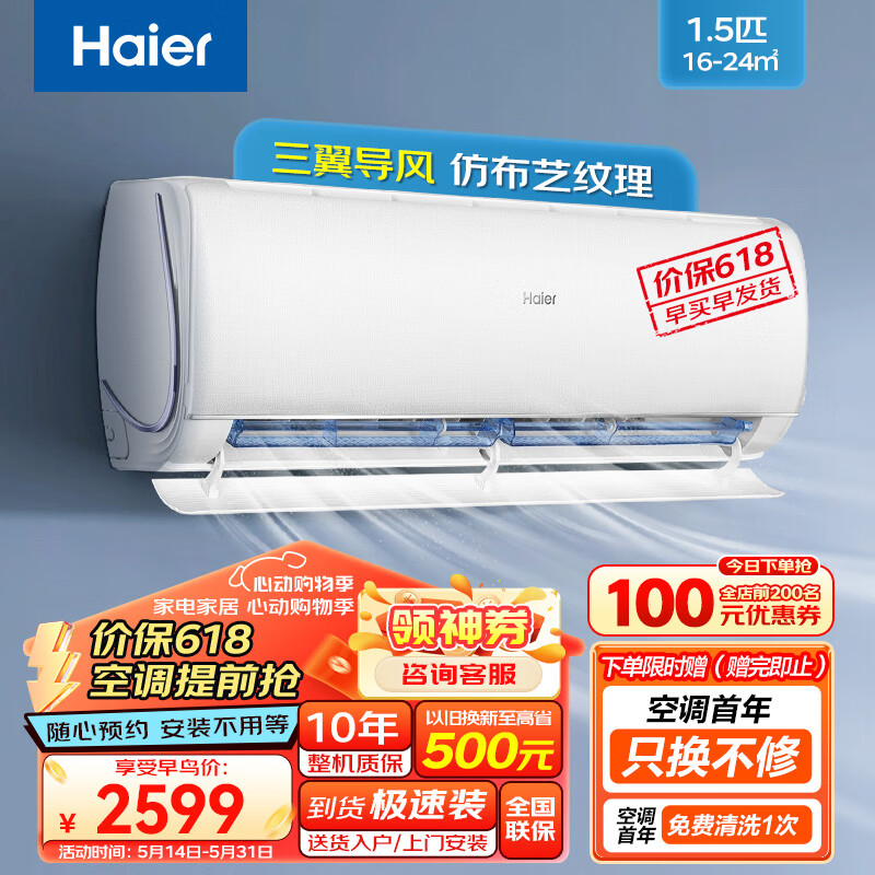 海尔(Haier)空调挂机1.5匹新一级能效省电冷暖变频空调 壁挂式家用智能 三翼导风防直吹 自清洁 以旧换新价格:2599.00元!