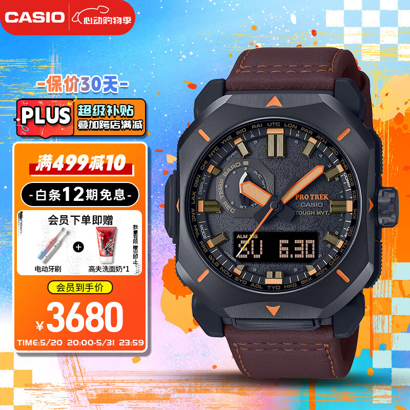 卡西欧(CASIO)手表男士PROTREK运动户外电子表520送男友礼物PRW-6900YL-5价格:3690.00元!