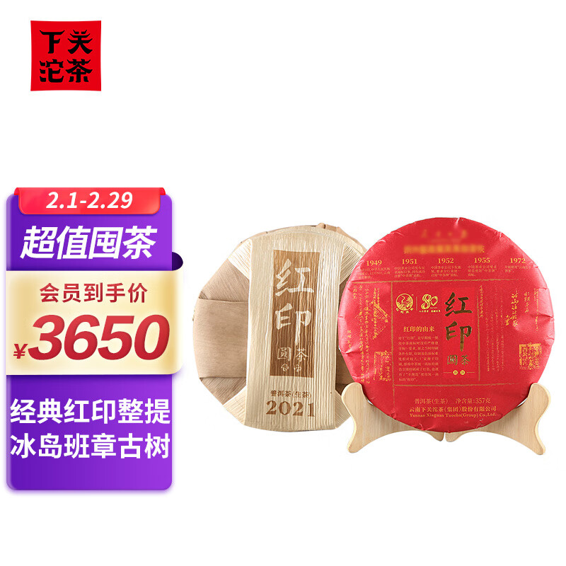 下关沱茶普洱生茶 2021年班章冰岛古树红印整提装357g*7饼 收藏年货送礼价格:11830.00元!