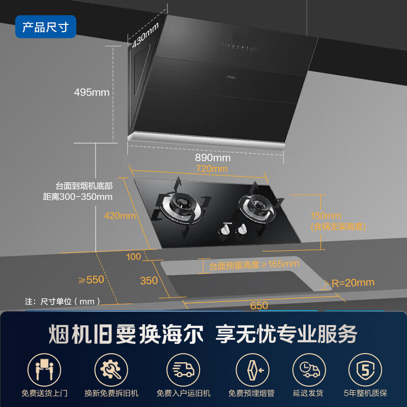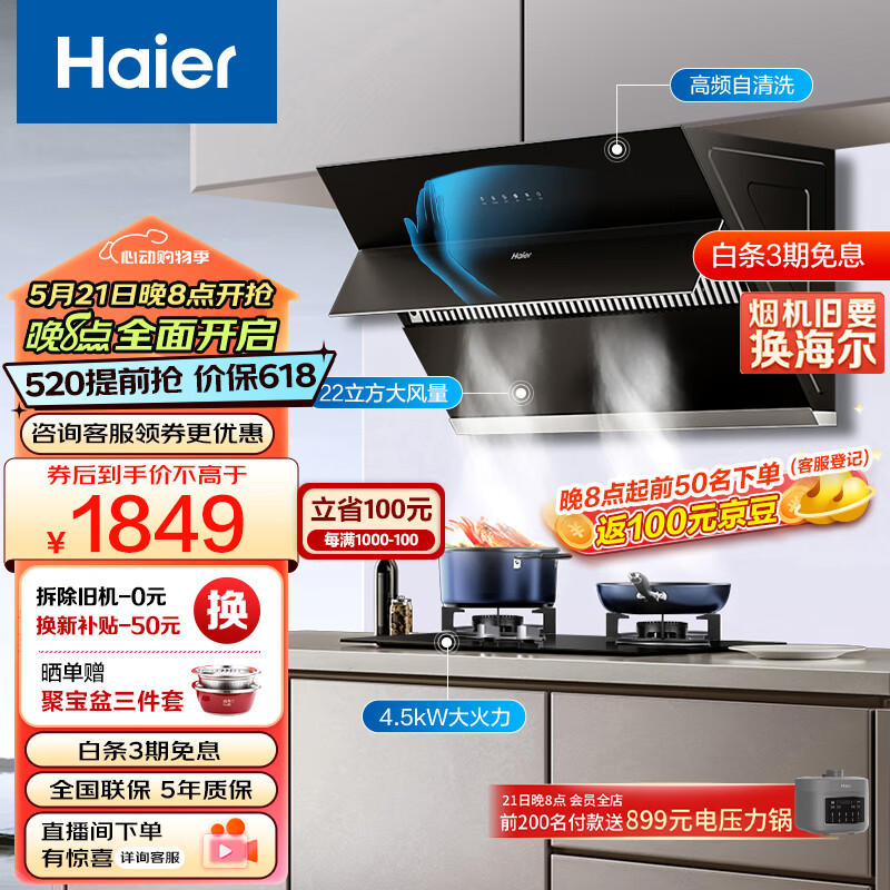 海尔(Haier)抽油烟机燃气灶套装 侧吸式22m3/min大吸力 挥手智控 自动清洗 油烟机灶具套装 MA2C1+Q2BE2液价格:1949.00元!