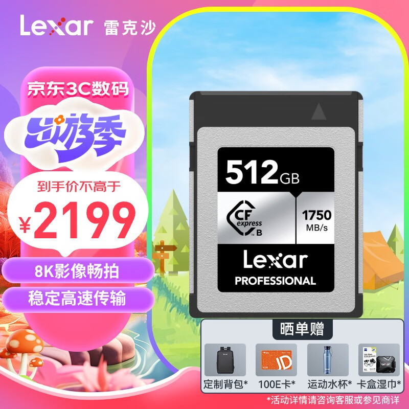雷克沙(Lexar)512GB CFexpress Type B存储卡 读1750MB/s 富士佳能尼康适配 8K超清录制 cfe卡(SILVER) 价格:2199.00元!
