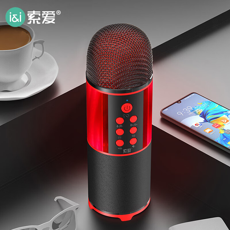 索爱(soaiy)MC12 k歌手机麦克风话筒 录音主播声卡套装唱歌神器音响一体无线蓝牙 黑价格:112.50元!