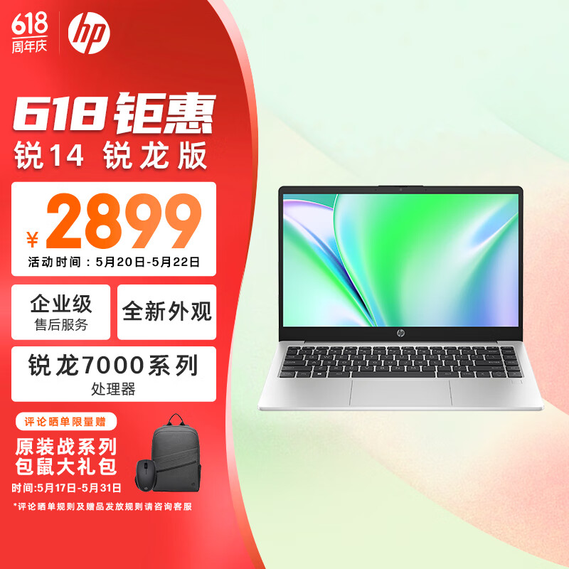 惠普(HP)锐14 AMD锐龙 14英寸轻薄笔记本电脑(六核R5-7530U 8G 512G 指纹识别 一年上门 13项军标认证)价格:2899.00元!