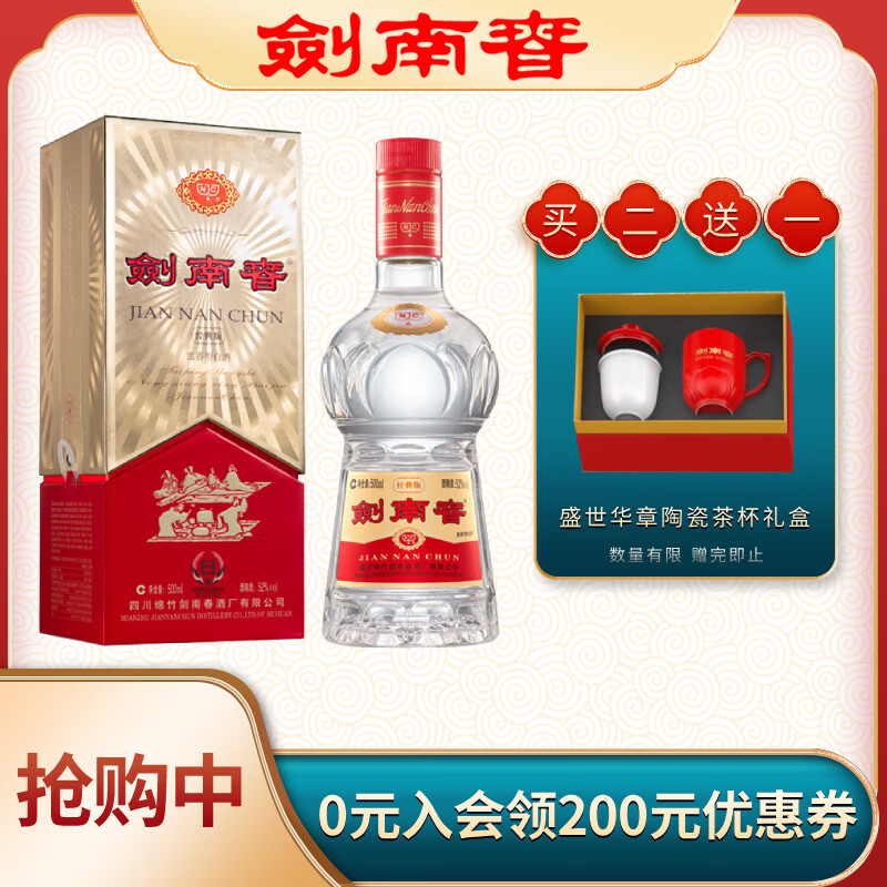 剑南春 经典版水晶剑 52度 500ml 单瓶装 浓香型白酒 佛光剑价格:578.00元!