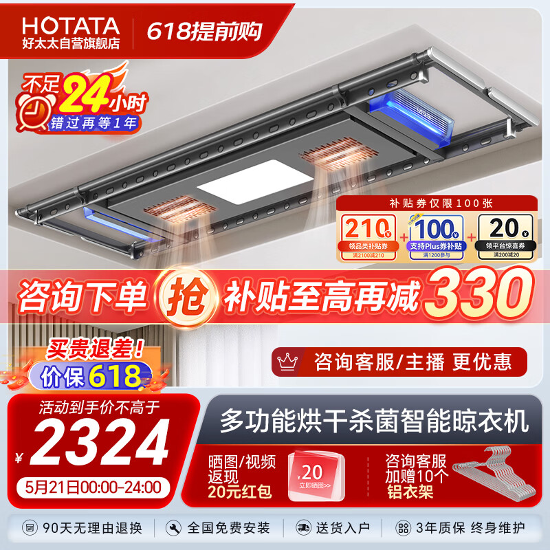 好太太电动智能晾衣架照明烘干风干杀菌语音多功能阳台晾衣架D-3181sj价格:3199.00元!