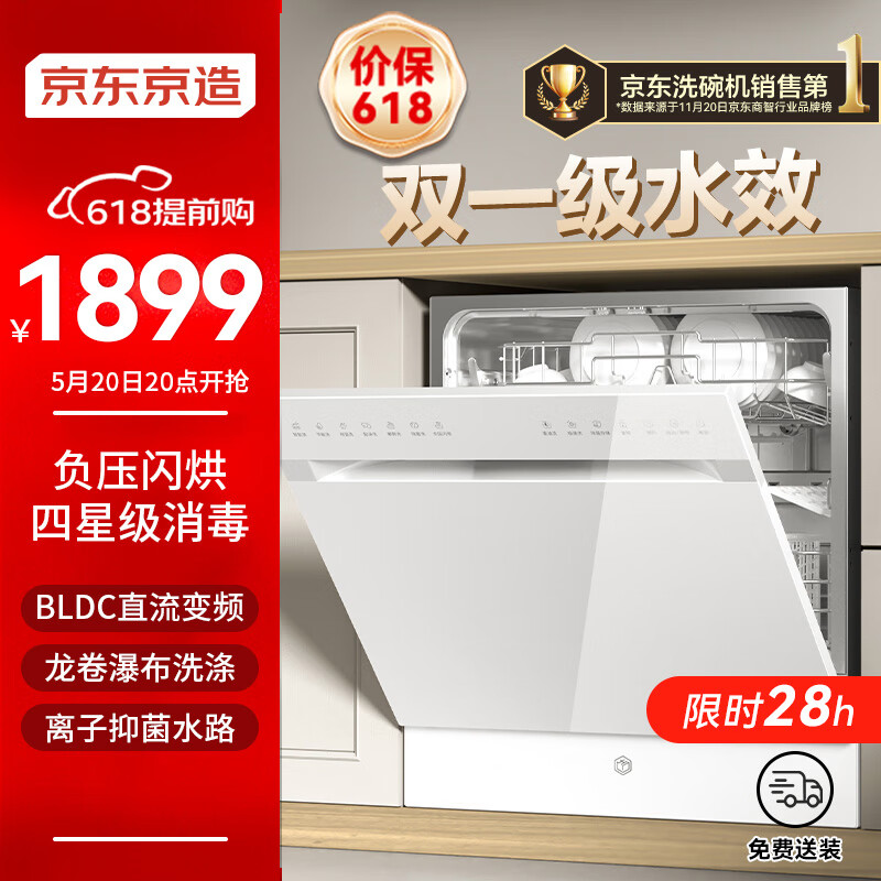 京东京造洗碗机P12 家用12套嵌入式洗碗机 母婴专洗离子水路 四消毒 1级水效 负压闪烘 7天存储全功能价格:2099.00元!