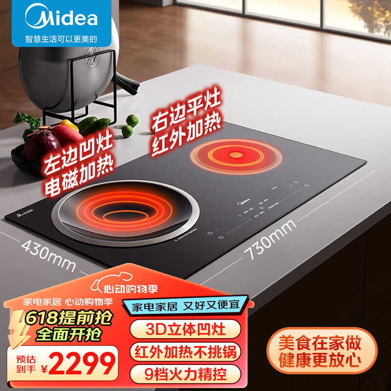 美的(Midea)电磁炉双灶 电磁灶家用大功率3500W电陶炉 一平一凹嵌入式不挑锅 智能触控滑控 MC-DZ35D06Q价格:2299.00元!