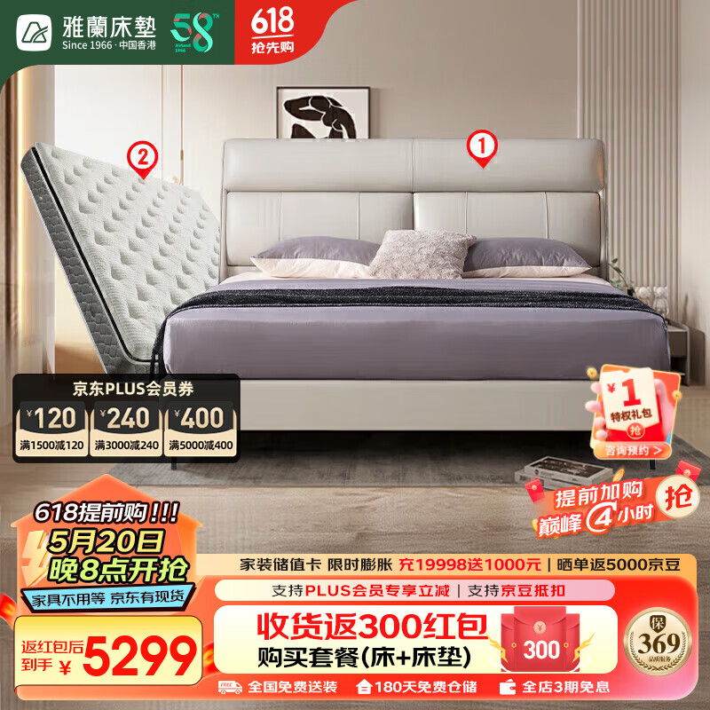 雅兰(AIRLAND)简约风皮床双人皮艺床 套餐 伯明翰+卓跃总统版 1.5*2米价格:6599.00元!