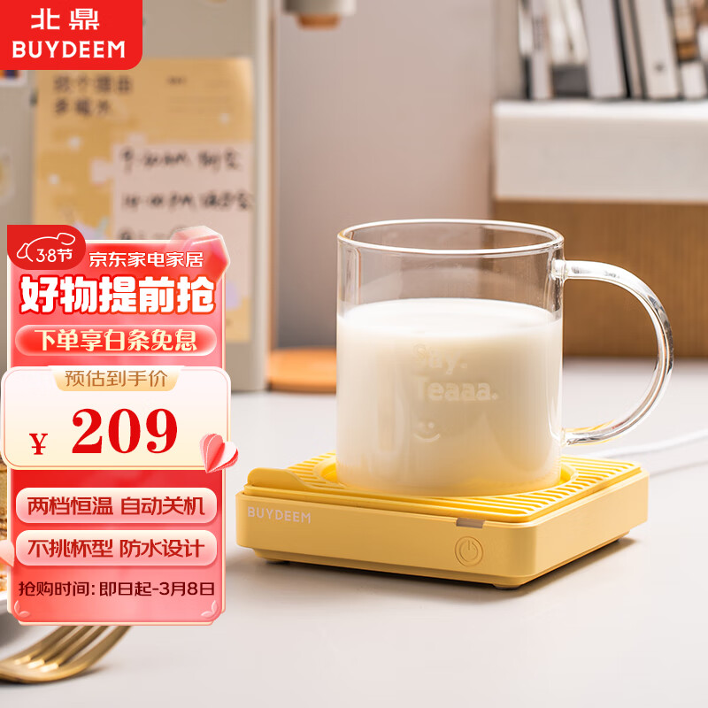 北鼎(Buydeem)保温杯垫圈 电热杯垫水杯恒温加热器恒温暖杯器办公室茶杯托暖奶器隔热保温垫 OA2001小鹅黄价格:209.00元!