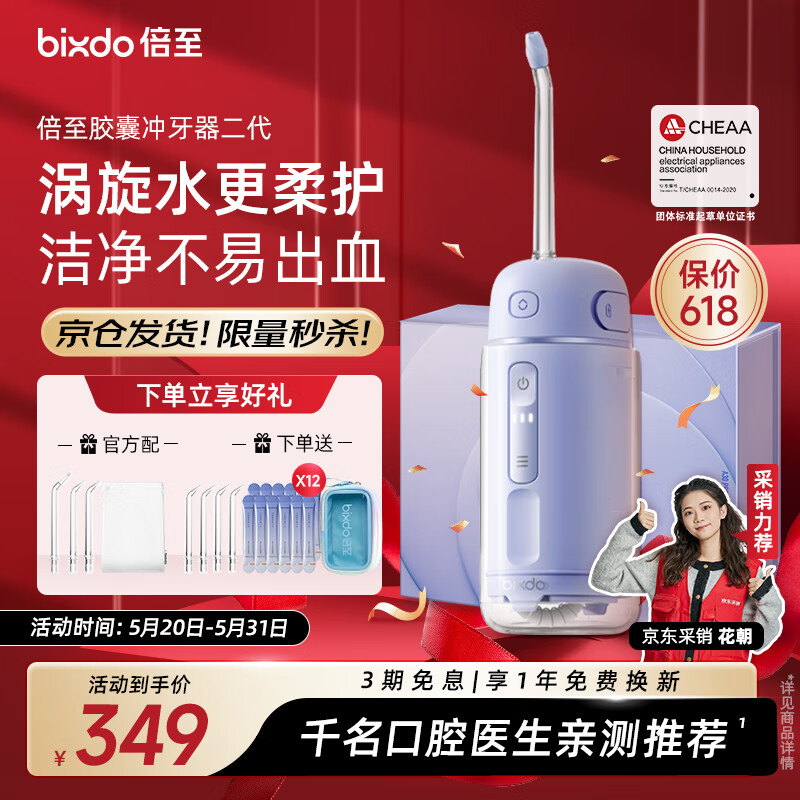 倍至(bixdo)冲牙器胶囊二代洗牙器水牙线美牙仪预防牙结石正畸适用伸缩便携儿童洁牙器情人节送男女朋友礼物价格:402.00元!