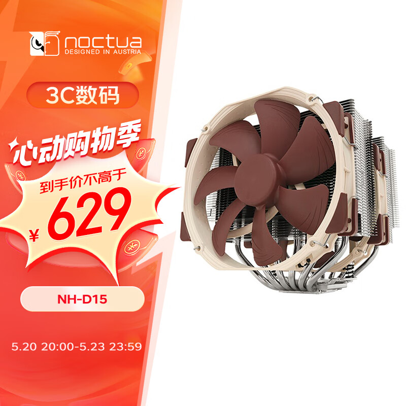 noctuaNH-D15 CPU散热器 (多平台1151/AMD/双风扇A15PWM/LGA1700)价格:629.00元!