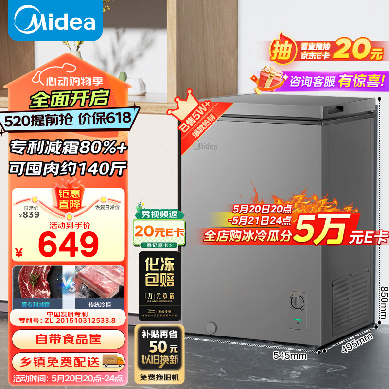 美的(Midea)100升低霜小冰柜家用冷藏冷冻两用一级能效母乳茶叶保鲜柜小型冷柜冰箱BD/BC-100KMF(E) 以旧换新价格:699.00元!
