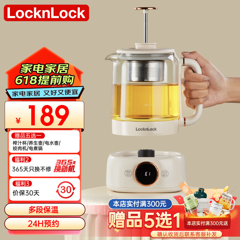 乐扣乐扣养生壶 0.8L煮茶器 办公室家用玻璃花茶壶烧水壶电热水壶电炖壶煮茶壶价格:189.00元!