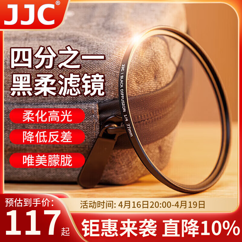 JJC 黑柔滤镜 1/4四分之一 柔光镜 柔焦朦胧镜 人像柔化镜 适用佳能尼康索尼富士单反微单相机52mm价格:117.00元!