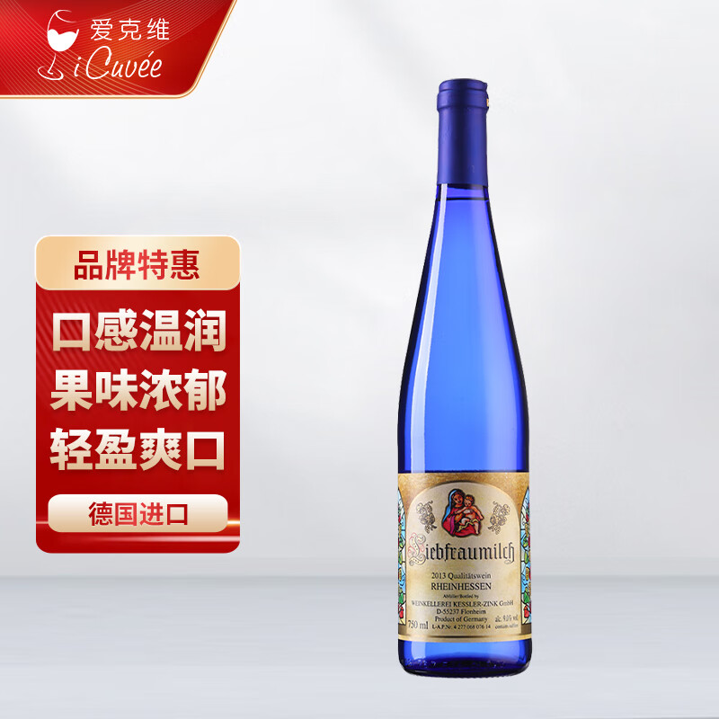爱克维(iCuvee)凯斯勒圣母之乳半甜白葡萄酒 750ml 单瓶装 德国原瓶进口价格:45.00元!