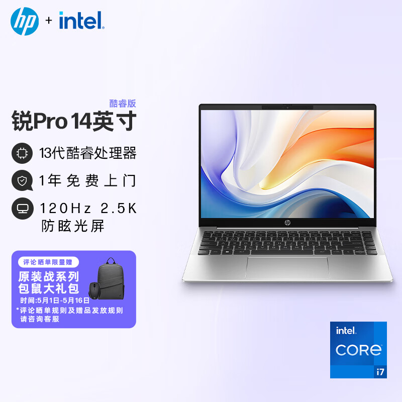惠普(HP)锐Pro 14英寸轻薄笔记本电脑(英特尔酷睿13代i7-1360P 高频16G 1T 2.5K高色域 Evo 长续航高性能)价格:5599.00元!