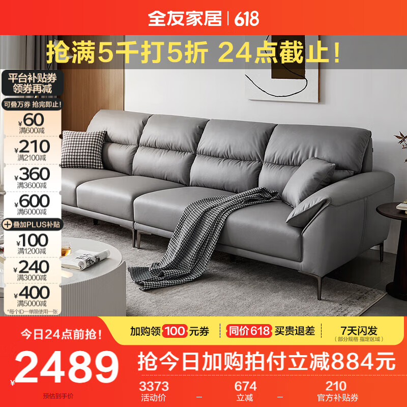 全友家居 科技布沙发客厅现代简约大象耳朵豆腐块直排沙发家具111077价格:3373.75元!