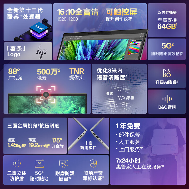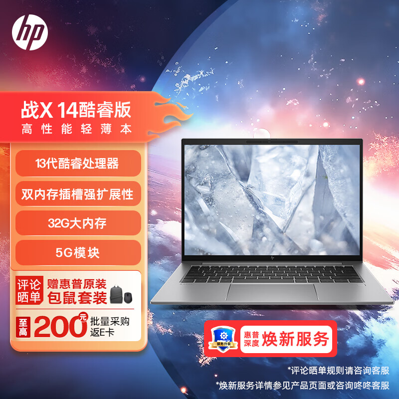 惠普(HP)战X?13代?14英寸高端高性能轻薄办公笔记本AI电脑?i7-1360P 32G 1TSSD?触控屏?5G畅连 深银灰价格:8299.00元!