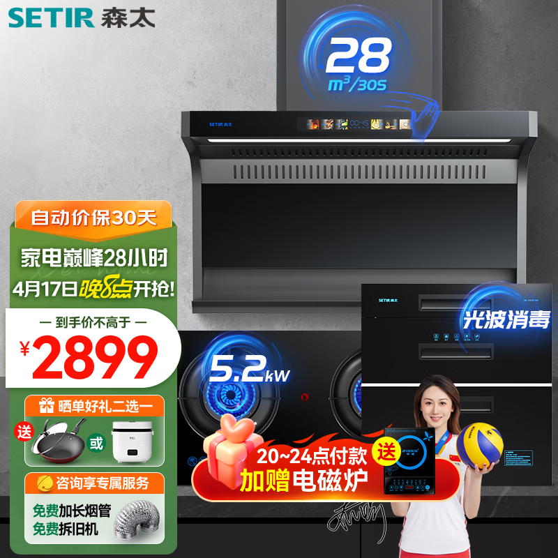 森太(SETIR)变频抽油烟机套装 1000Pa变频顶侧双吸抽油烟机燃气灶消毒柜厨房三件套 B929+TA19+F260(天然气)价格:3199.00元!