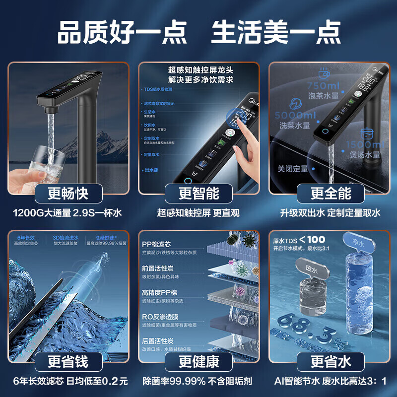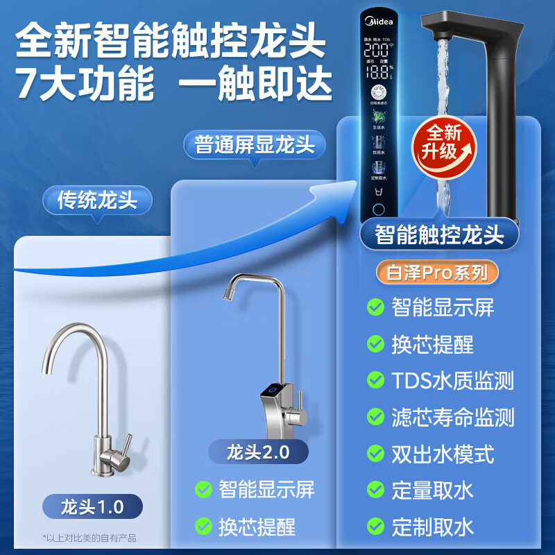 美的(Midea)省芯直饮净水器套装【白泽1200Gpro+前置过滤器-24pro】厨下式智能水龙头 RO反渗透家用一体净饮机价格:2599.00元!