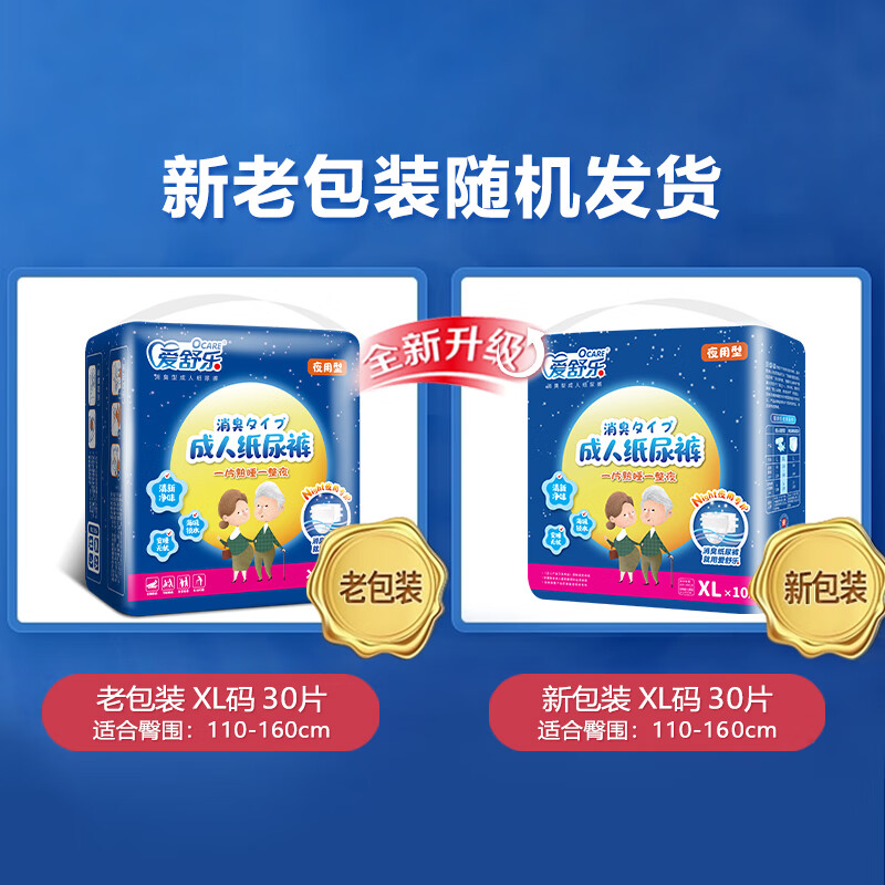爱舒乐 夜用型成人纸尿裤XL30片 大号 (臀围:110-160cm) 老人产妇尿不湿价格:116.00元!