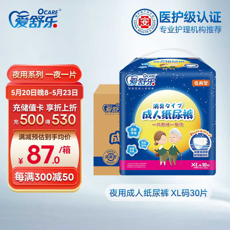 商品名称:爱舒乐夜用型成人纸尿裤XL30片