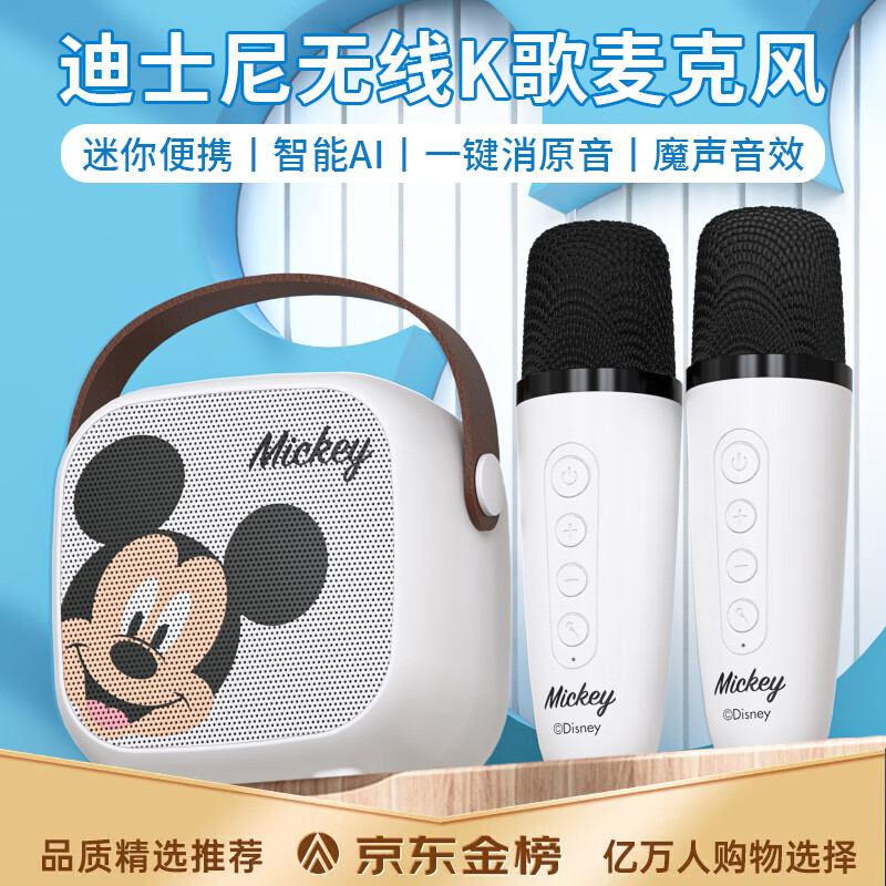 迪士尼(DISNEY)话筒音响一体麦克风k歌音箱自带声卡无线蓝牙手机直播六一儿童节生日礼物家庭ktv音响套装MK01米奇价格:149.00元!
