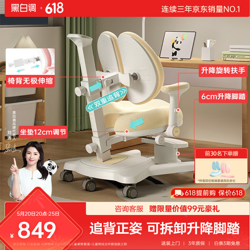黑白调学习时光G5学习椅【追背正姿 可拆卸脚踏 升降可旋转扶手】儿童学习椅 木价格:1099.00元!