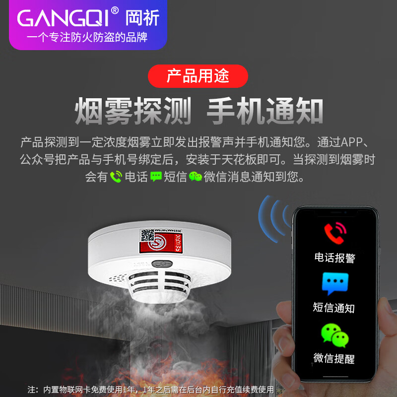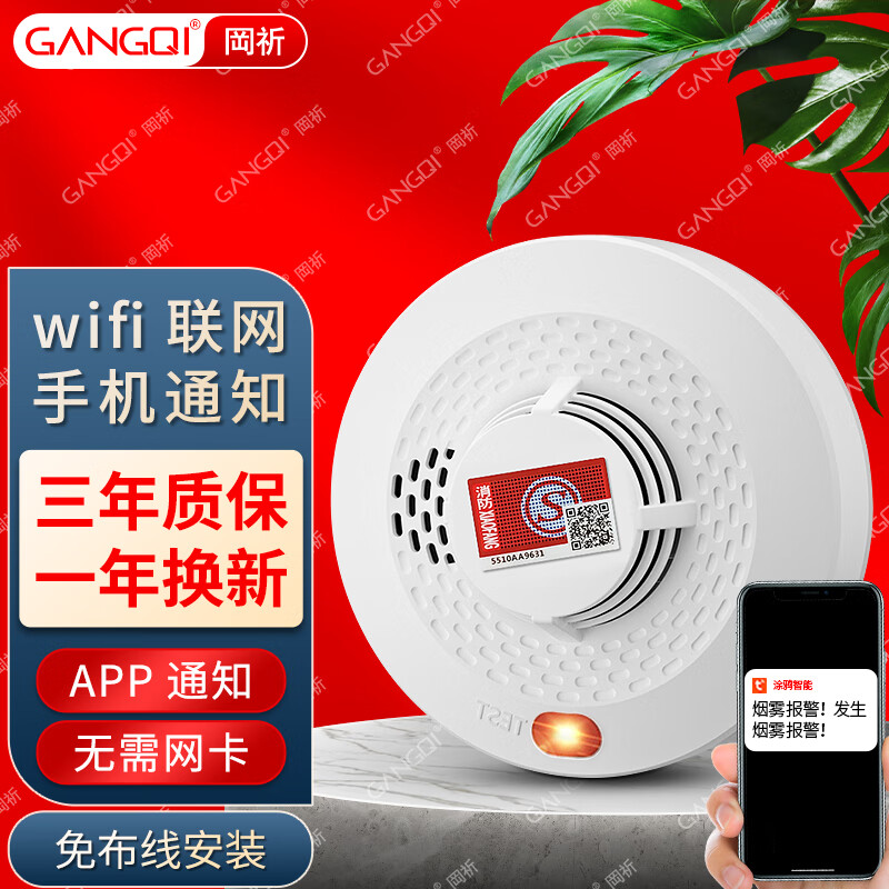 岡祈(Gangqi)远程手机通知 wifi火灾烟雾报警器消防3C认证家用无线物联网防火烟感报警器商用感应探测器价格:129.00元!
