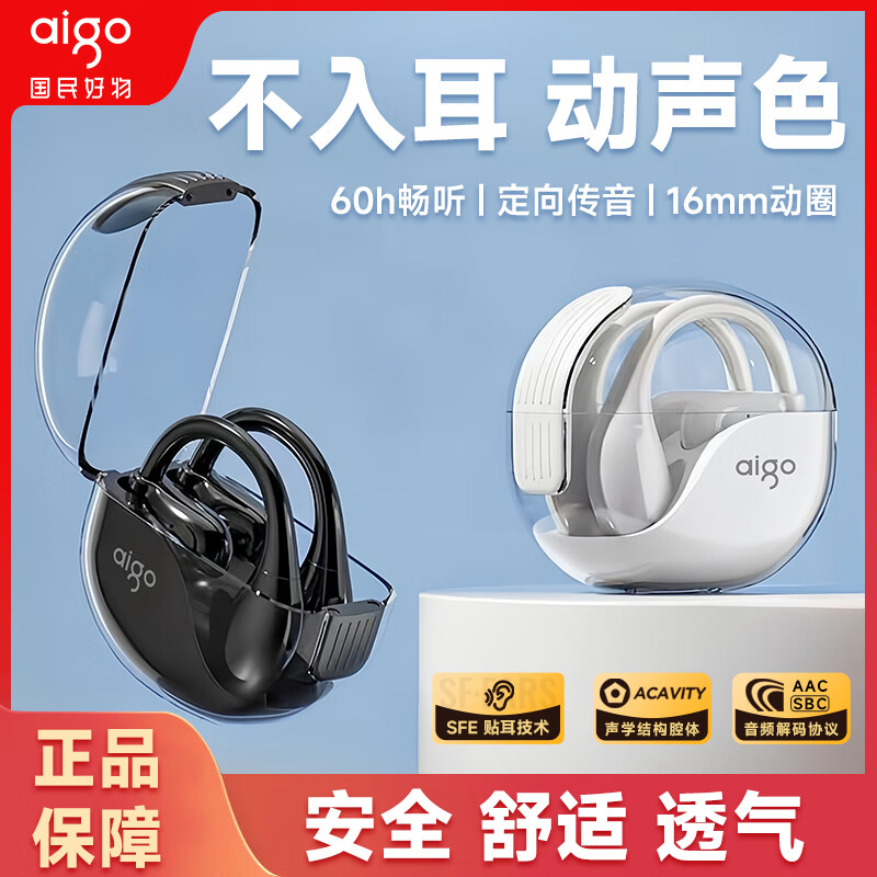 爱国者(aigo)TJ260蓝牙耳机挂耳式 骨传导概念 不入耳开放式 真无线舒适运动骑行通话耳机 适用安卓苹果 白色价格:129.00元!