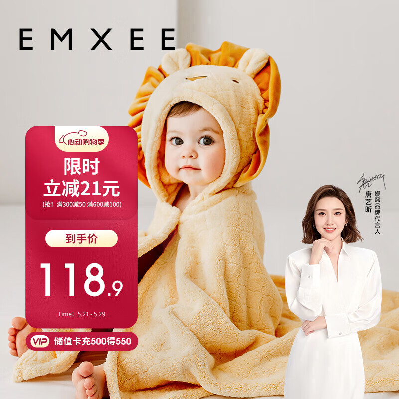 嫚熙(EMXEE)儿童浴巾新生儿超软宝宝婴儿秋冬洗澡斗篷浴袍 狮子125*80cm价格:139.90元!