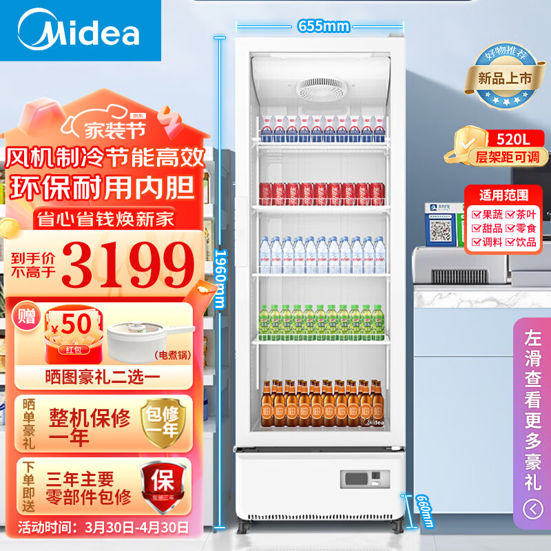 美的(Midea)展示柜商用 520升立式饮料陈列柜冰柜冷藏展示柜 商超便利店鲜花蛋糕啤酒柜 SC-520GWMA(Q)价格:3299.00元!