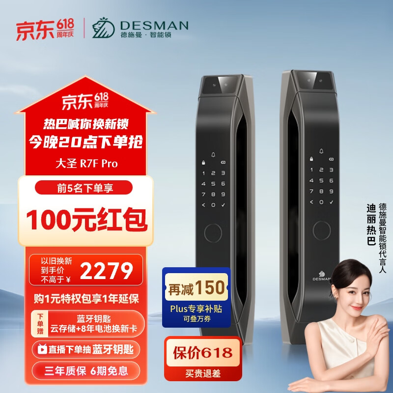 德施曼(DESMAN)3D人脸智能门锁 密码锁入户门指纹锁 可视频猫眼防盗 大圣 R7FPro价格:2299.00元!
