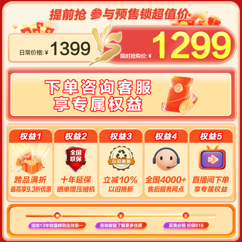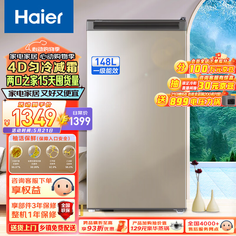海尔(Haier)148升匀冷家用立式冰柜 母乳冷冻柜抽屉式冷柜囤货小冰柜家用小型冰箱BD-148MDT 以旧换新价格:1399.00元!