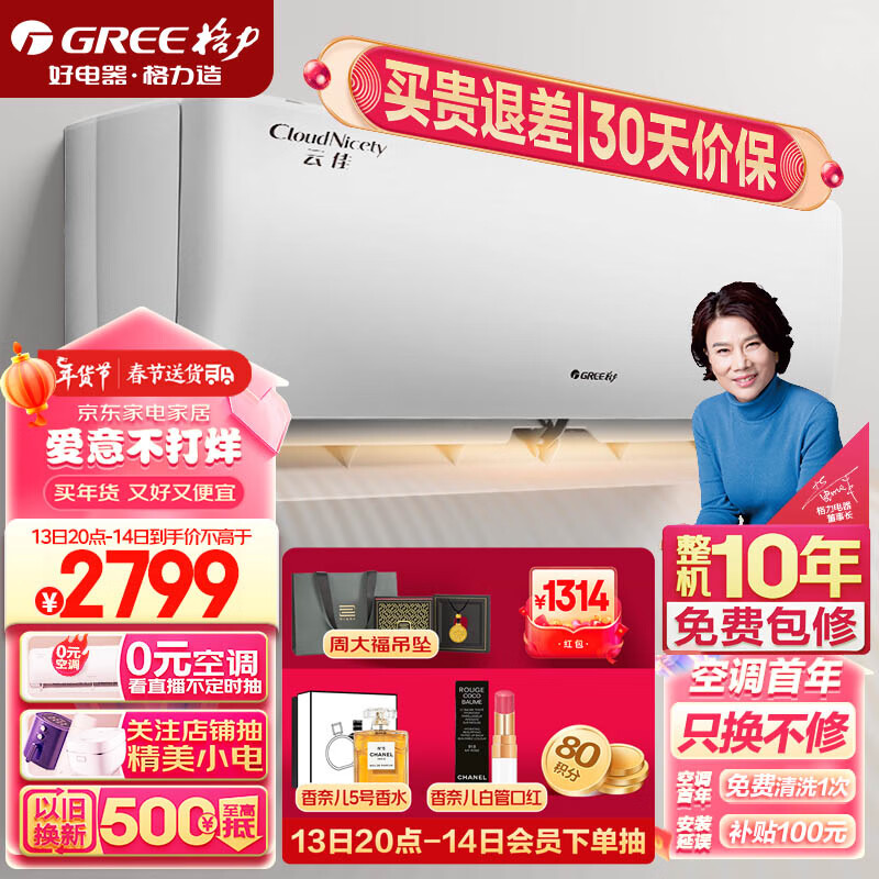 格力(GREE)大1匹 云佳 新一级能效 变频冷暖 自清洁 壁挂式空调挂机KFR-26GW/NhGd1B价格:2769.00元!