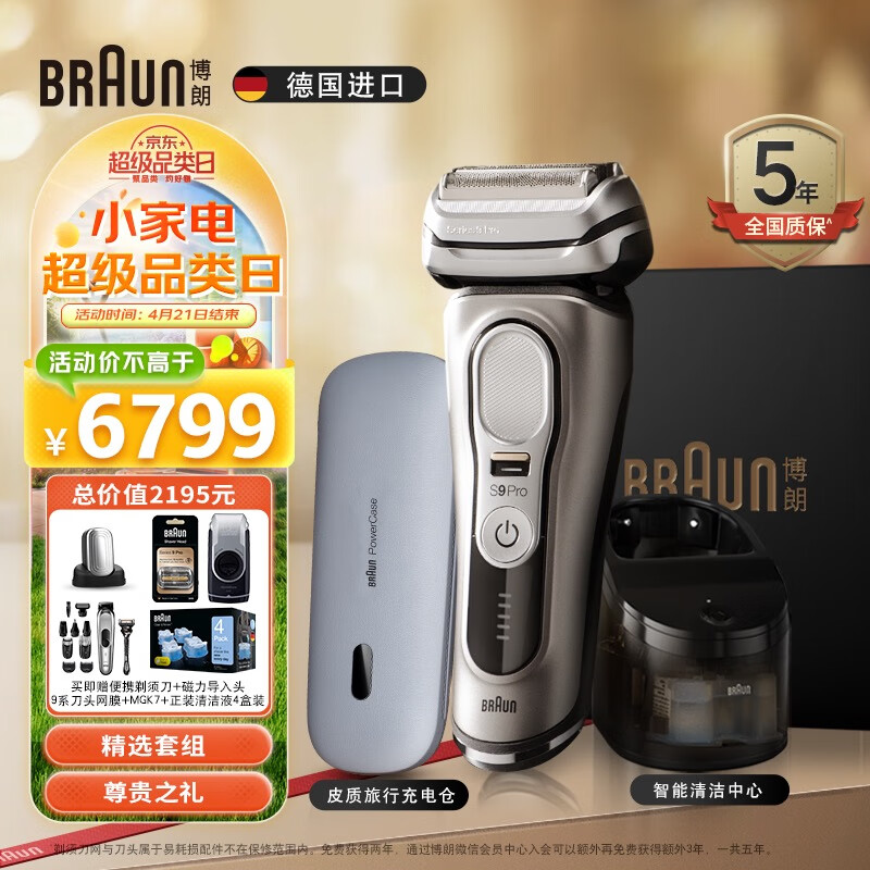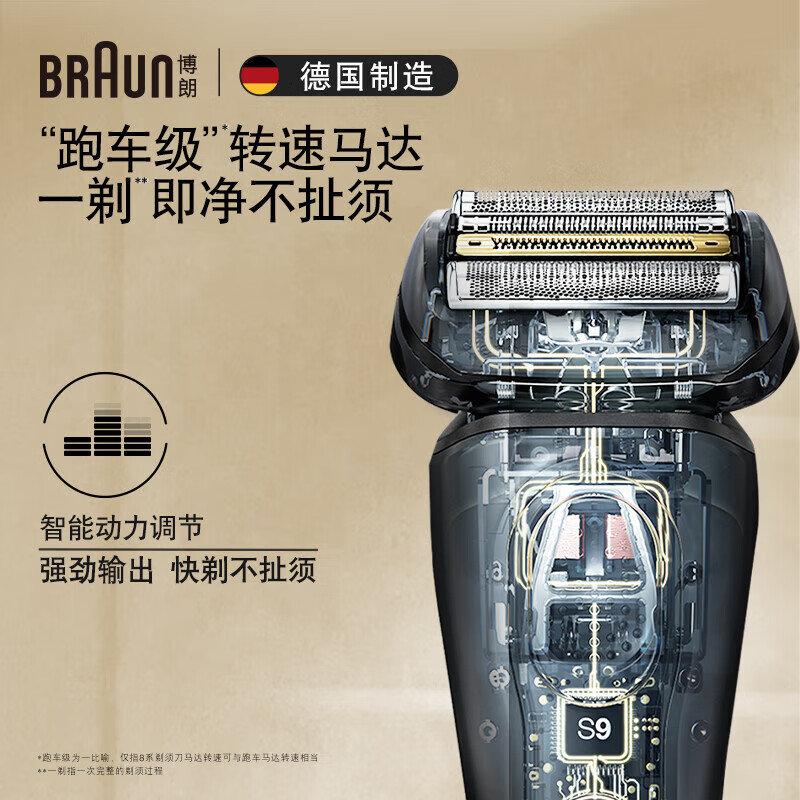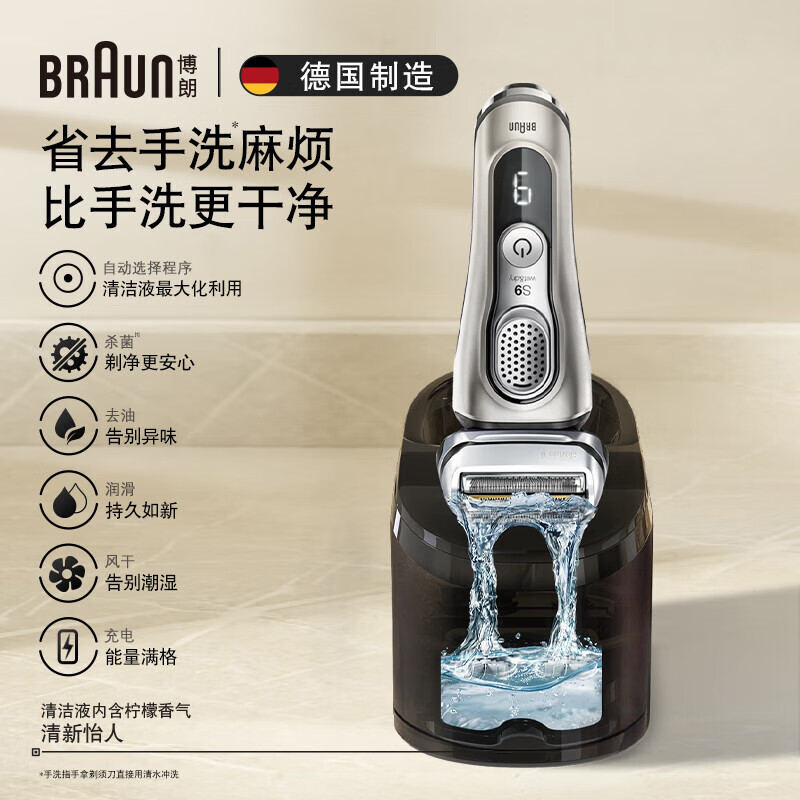 博朗(BRAUN)尊享9系Pro升级版清洁+旅行无线充电礼盒款电动剃须刀整机德国进口往复式刮胡刀送男友价格:6799.00元!