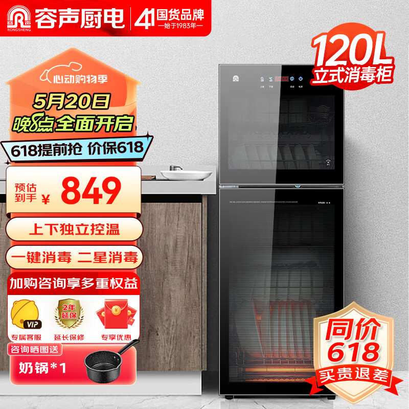 容声(RONGSHENG)消毒柜家用 立式消毒碗柜 商用 餐具茶杯碗筷厨房臭氧消毒柜120L双门大容量178-RQ230(A)价格:849.00元!