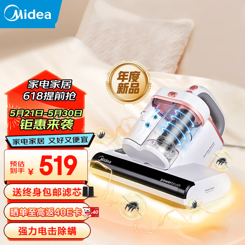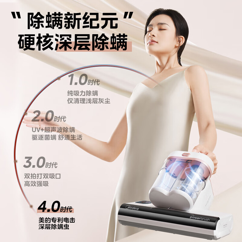 美的(Midea)除螨仪大吸力双杯尘螨分离 手持家用床上吸尘器电击紫外线恒温除湿MX6小闪电价格:519.00元!
