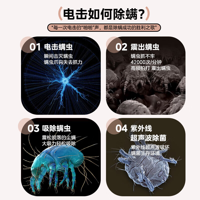 除螨方式:超声波除螨,电击除螨,紫外线除螨
