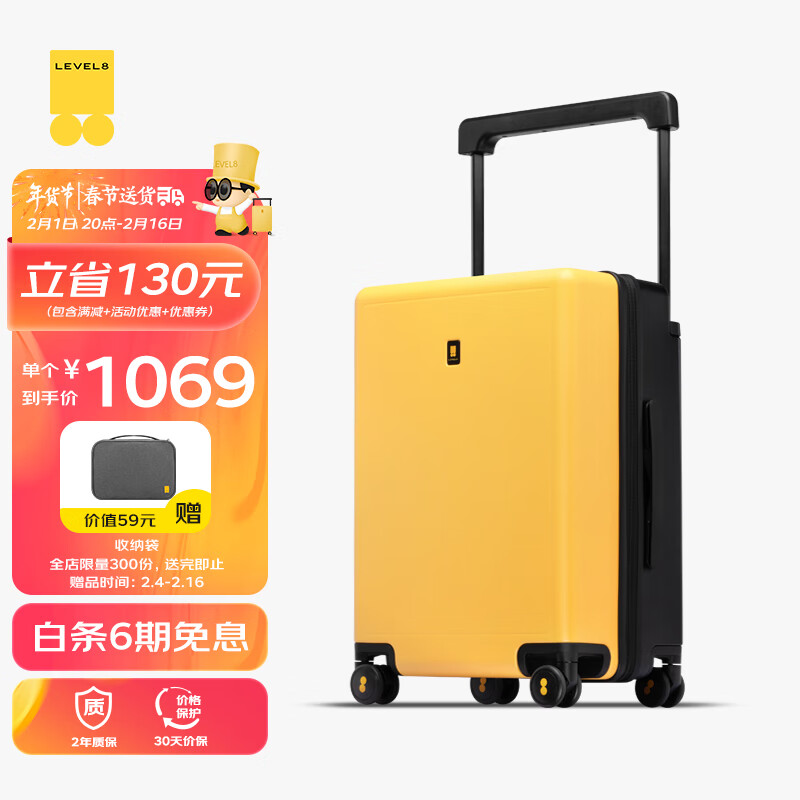 地平线8号(LEVEL8)行李箱男女密码拉杆箱大旅行家20英寸登机宽拉杆PC旅行箱黑黄拼色价格:1199.00元!