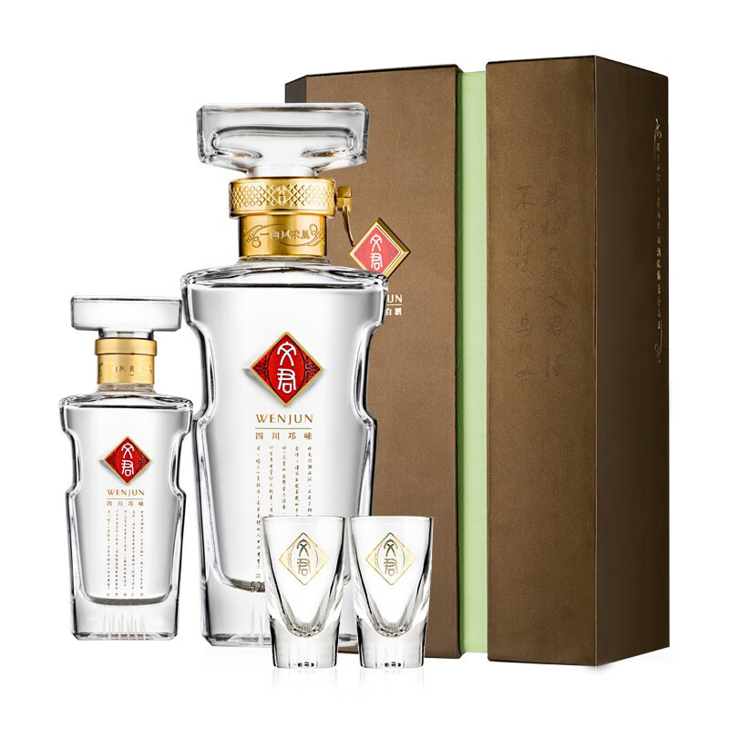 文君 绿色礼盒 52度 500ml+100ml 礼盒装 浓香型白酒 剑南春集团价格:318.00元!