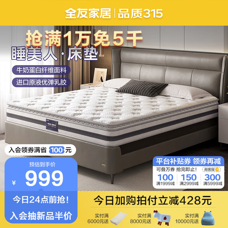 全友家居 床垫乳胶床垫独立袋装弹簧正反两用针织面料床垫105110价格:1427.14元!