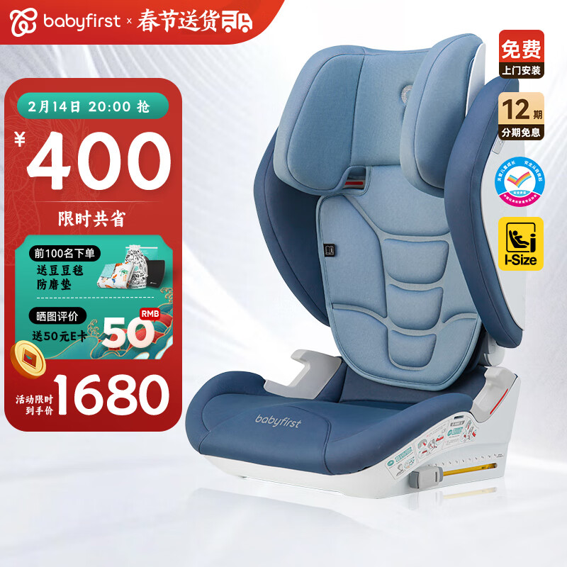 宝贝(Babyfirst)耀趣大儿童座椅汽车载3岁以上-12岁i-Size增高垫 柔雾蓝R943A价格:2080.00元!