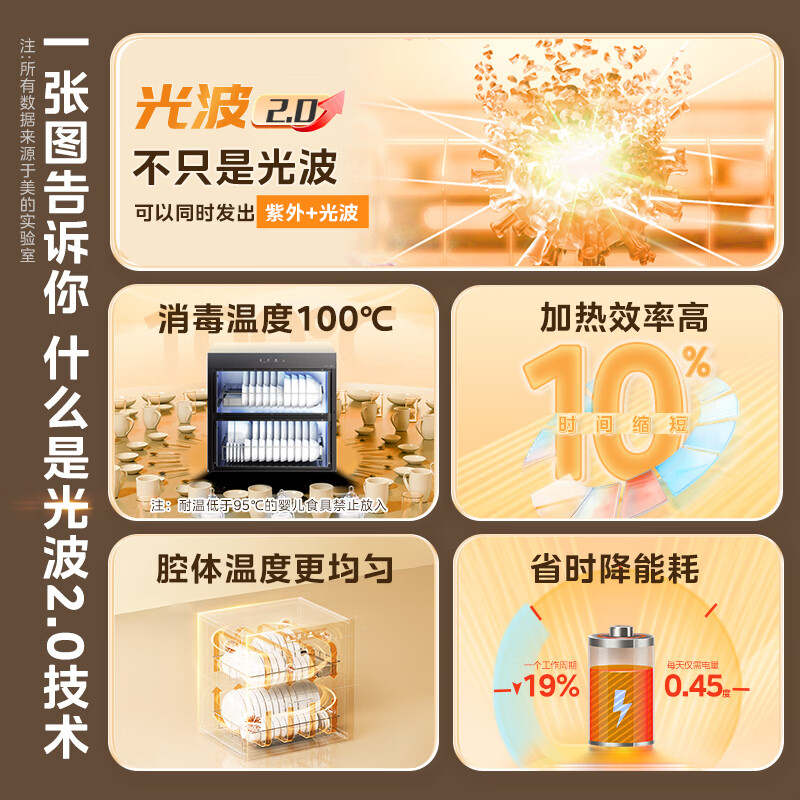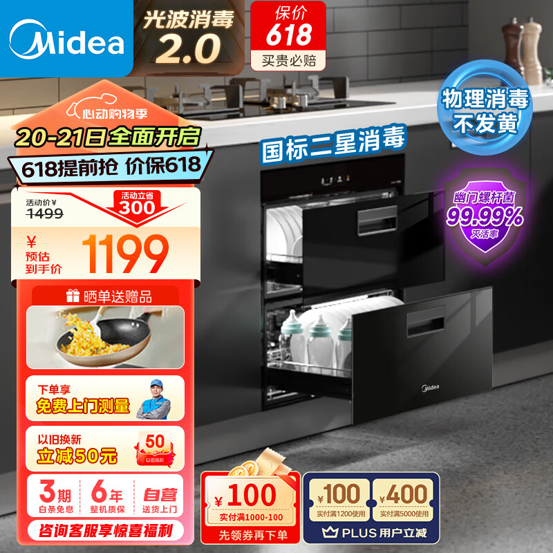 美的(Midea)消毒柜嵌入式家用 新升级光波2.0 110L双层大容量餐具碗柜碗筷婴儿奶瓶 MXV-ZLP90Q15S Pro价格:1299.00元!