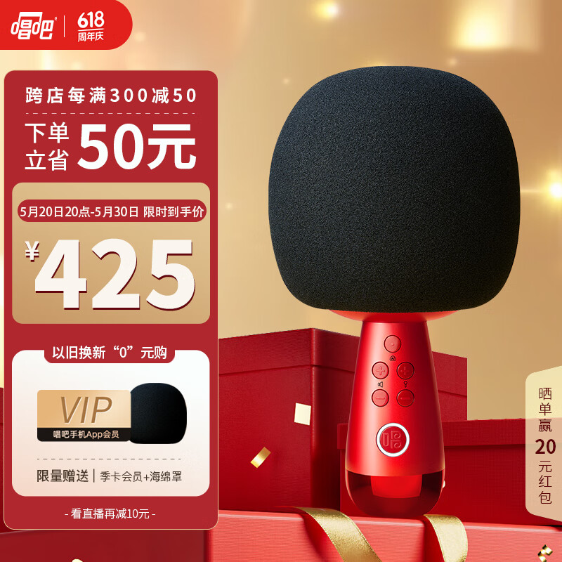 唱吧小巨蛋麦克风G2升级版 手机K歌麦克风音响一体 家庭娱乐KTV无线话筒 高音防啸叫 绯红色价格:475.00元!