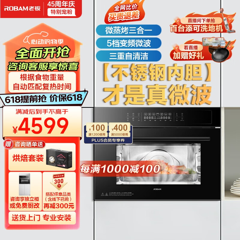 老板(Robam)微蒸烤箱一体机嵌入式5档变频微波家用多功能微波炉蒸箱烤箱3合1一体机CQ979价格:4999.00元!