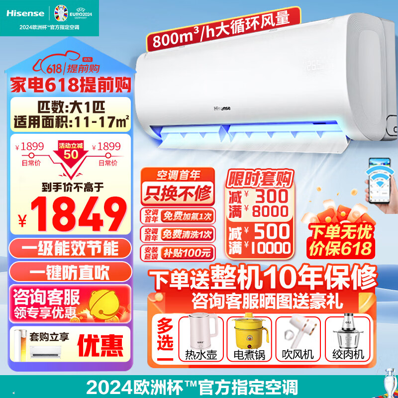 海信(Hisense)空调大1匹新一级能效变频冷暖一键防直吹 客厅卧室壁挂式空调挂机APP智能KFR-26GW/E370-X1价格:1849.00元!