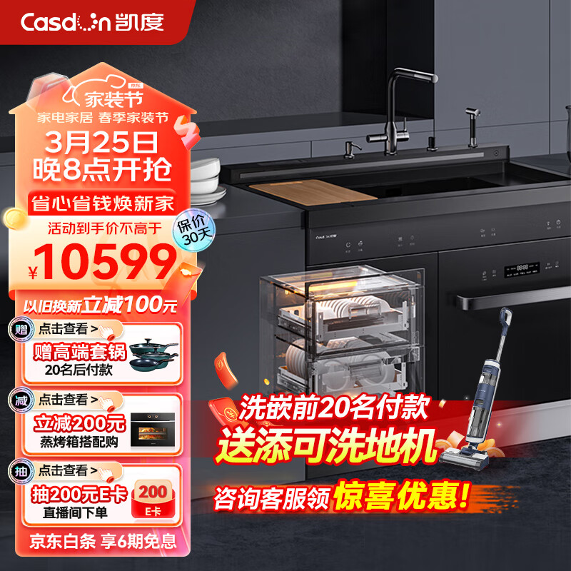 凯度(CASDON)集成水槽洗碗机一体 多功能厨房 嵌入式洗碗机储物柜集成净洗中心 S105B12XKB价格:10599.00元!